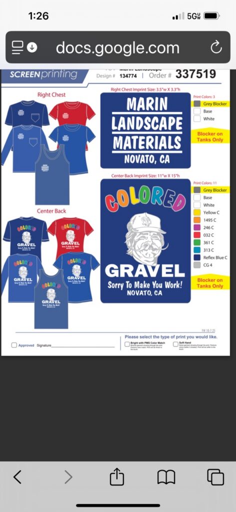 A glimpse of our custom screen printing and embroidery work for clients across San Rafael and Marin County.